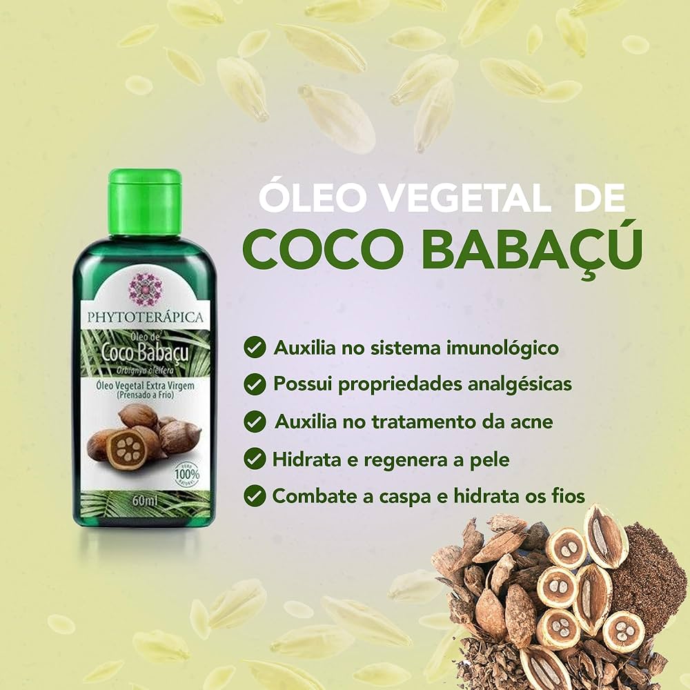 Fruto da palmeira nativa do norte do Brasil, o óleo vegetal de Coco Babaçu da Phytoterápica é extra virgem, rico em ácidos graxos de cadeia saturada como o ácido láurico e caprílico.